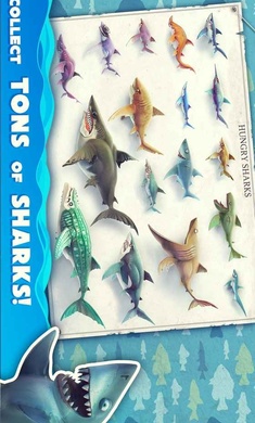 --可以收集各有7种不同大小的20类鲨鱼品种,扮演敏捷的双髻鲨,甚至到著名的大白鲨!