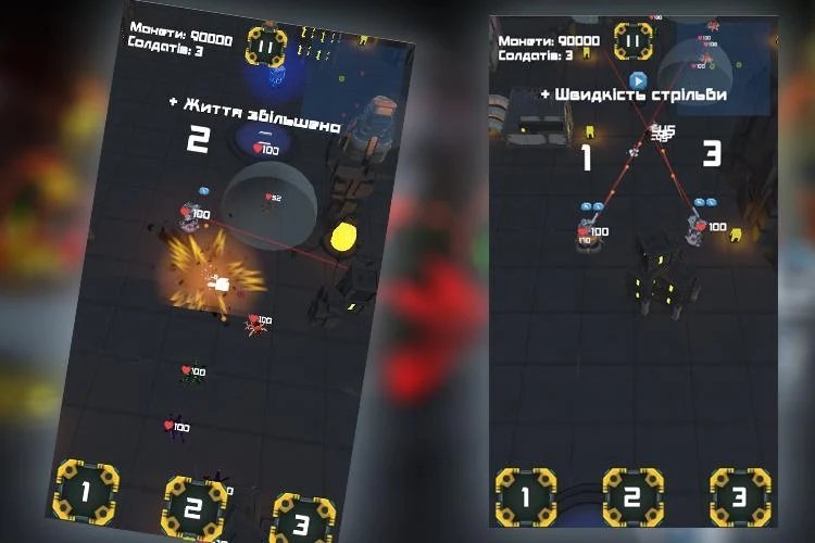 1、升级你的防御塔抵御敌军入侵,强化士兵和武器装备提升你的战斗力;