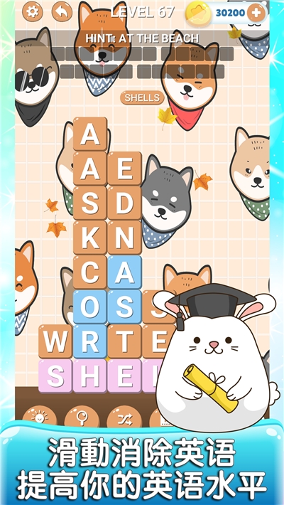 3、超萌的界面主题和背景,是女生女孩最喜欢玩的英语拼字应用,提升你的英语水平。
