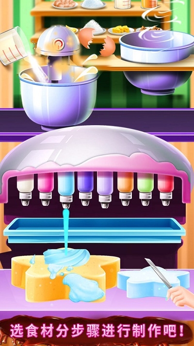根据指引来完成制作蛋糕各个步骤,制作合适的蛋糕胚。