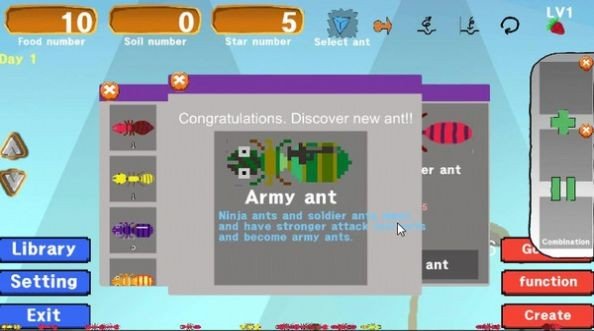 ·带领自己的蚂蚁族群不断的扩大,探索更大的世界,多种玩法模式可以进行尝试