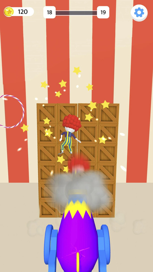 只要在马戏团出现过的东西,都会成为你的玩具,点击屏幕切换玩法,操控大炮瞄准箱子开炮。