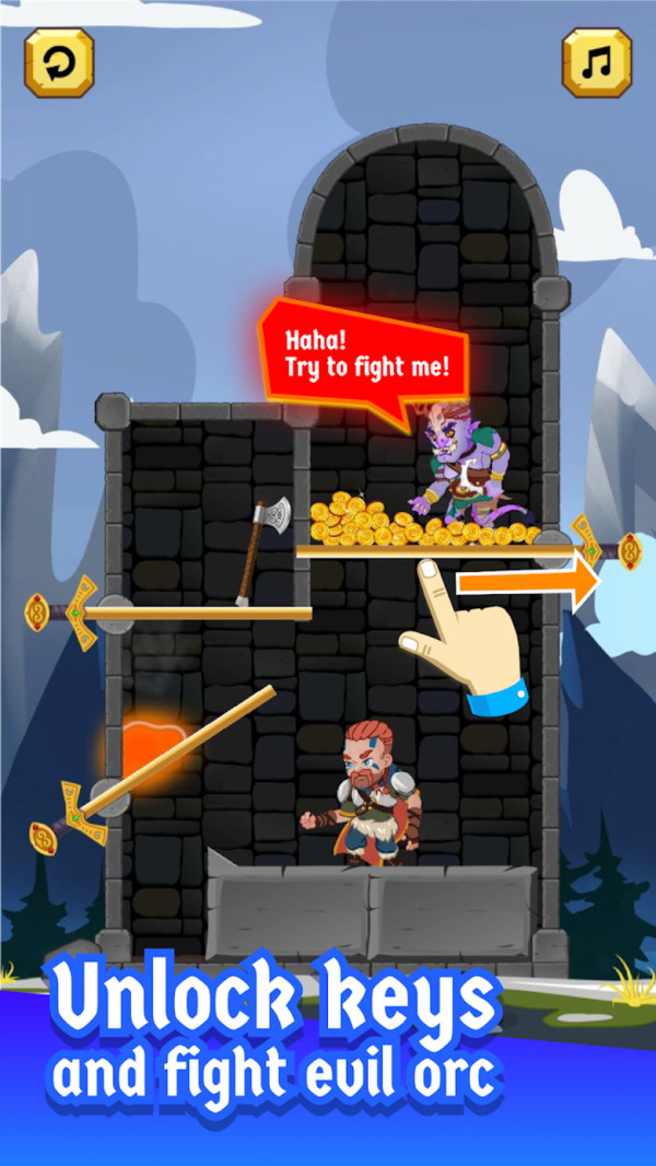 救救维京国王是一款近期热度极高的拉针解谜小游戏,多样化的场景关卡设计,通过拉针操作解救被困住的国王,在关卡当中还有各种障碍危险和敌人存在,每一步操作都要谨慎小心哟,喜欢这类解谜游戏的伙伴们一起来下载试试吧!