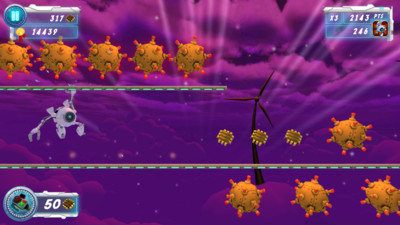 上手轻松简单,游戏里控制机器人开始跑酷,并且,你需要不断的避开各种危险以及障碍物。
