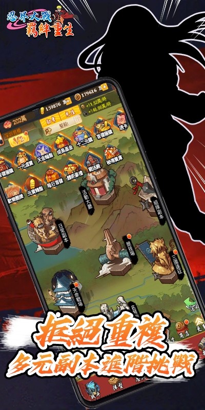 忍者大陆自由冒险,招募英雄和你一起战斗!