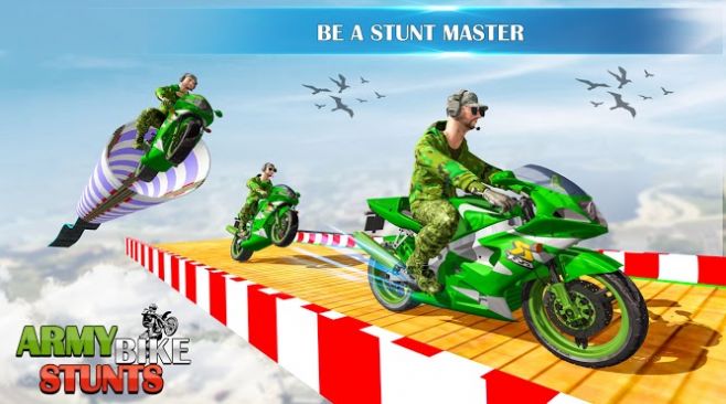 陆军特技演员自行车比赛游戏又名Army Bike Stunt,这是一款非常精彩趣味的特技表演游戏,游戏中玩家会驾驶摩托车进行比赛,赛道是非常的多样的,你能够驾驶你的摩托车玩出非常多不一样的特技哦!
