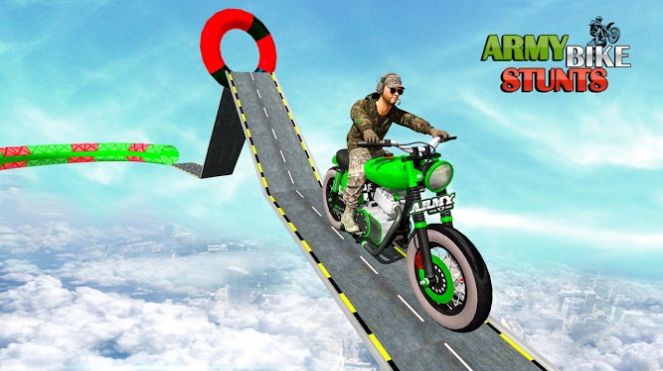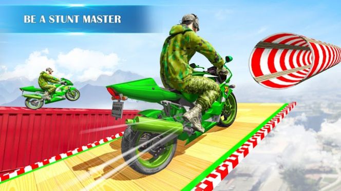 2、驾驶您的军用摩托车并在不可能的特技斜坡上行驶,成为专业的特技大师,享受特技惊人的跳跃;