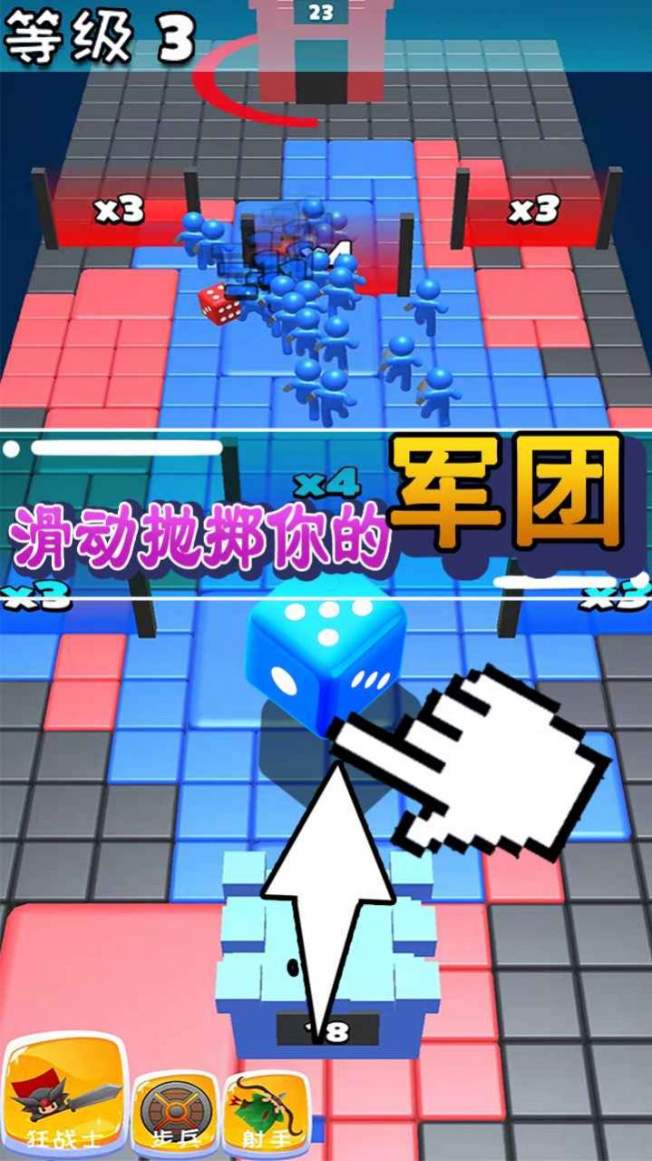 1、游戏中的关卡非常的精彩,滑动屏幕就可以投掷骰子,可以生成对应数量的士兵;