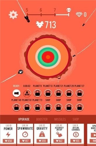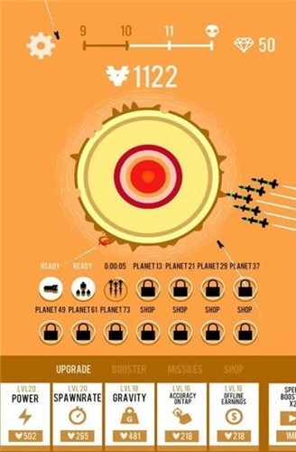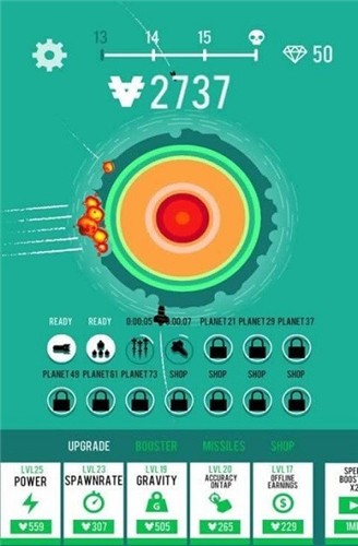 游戏玩法很简单,对着一个星球不断的发射导弹,直至将星球摧毁即可。