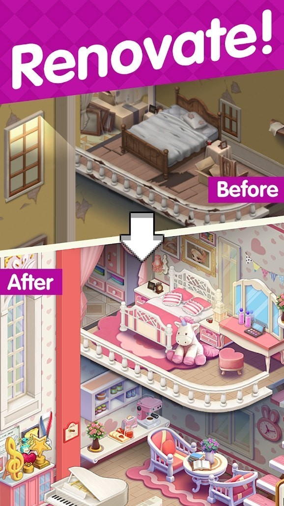 2、游戏中对于升级翻新的方式是要将两个小房子合在一起;