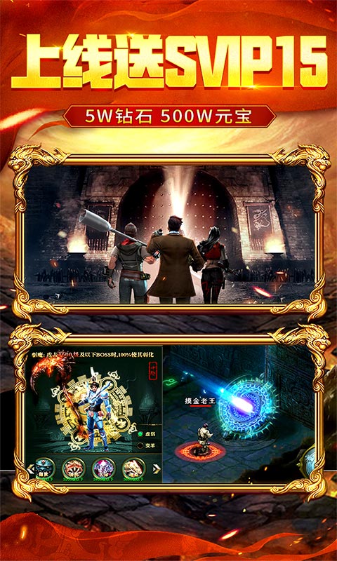 1、百倍爆率,打爆boss有超丰富的神装爆屏,回收武器资源爽翻天。