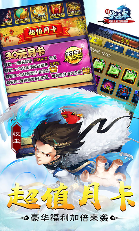 1、超值月卡福利拉满,每日元宝、欧皇抽奖券、各种材料、武将领不停;