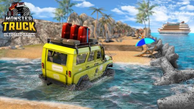 2、驾驶卡车进行赛车冒险非常刺激,考验玩家的驾驶技术;