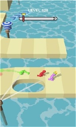 1、简单的操控着小人在独自自动奔跑,遇到木桩通过你长按屏幕会出现绳子将小人拴住。