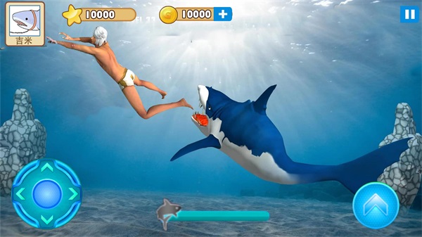 大白鲨真实模拟免费版是一款非常真实的模拟类游戏,你可以灵活地控制你的鲨鱼来完成各种狩猎任务,水平屏幕之上的游戏屏幕设置和虚拟键的操作使您可以在各种不同的挑战模式之下进行游戏,你可以自由选择,游戏玩法简单,充满乐趣。