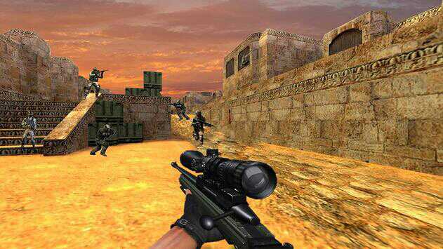 1、很多不同的场景可以任意挑选,比如沙漠场地、学弟地图等,都是经典的CS场景;