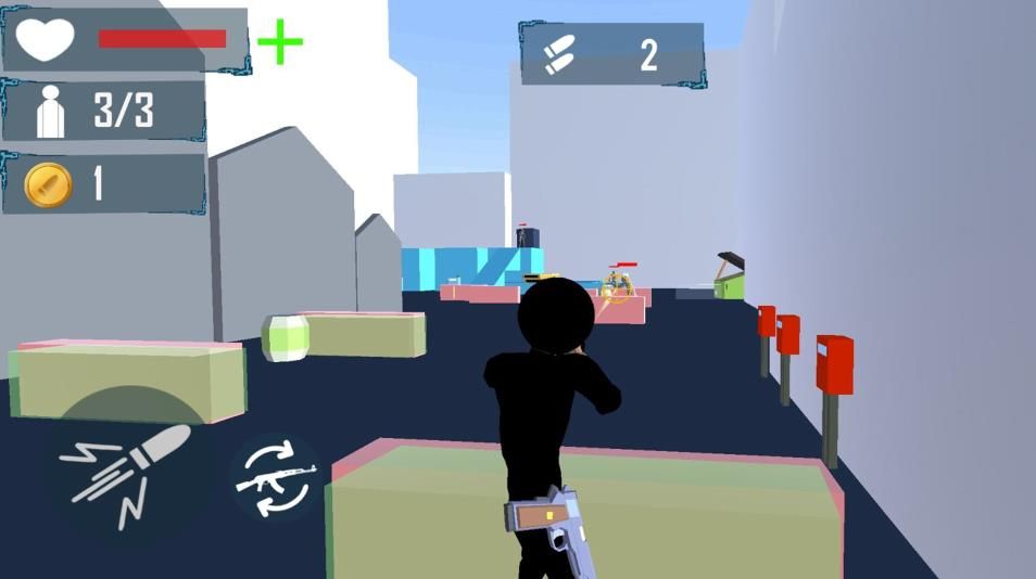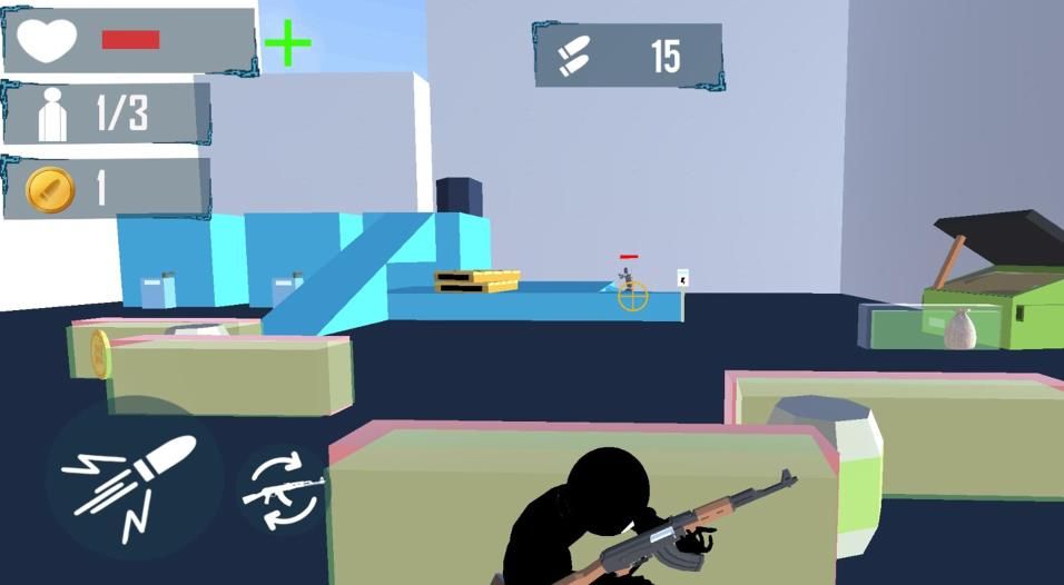 1、游戏中需要控制火柴人不断射击,玩家需要消灭所有敌人才能获胜。