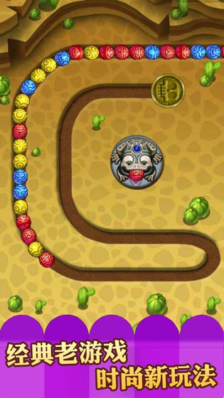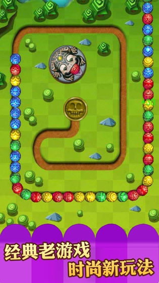1.经典的祖玛游戏,相同颜色的小球碰到一起就可以消除。