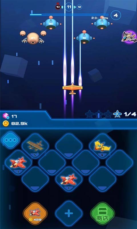2、不断解锁更强大的飞机和强大的僚机来帮助你度过难关。