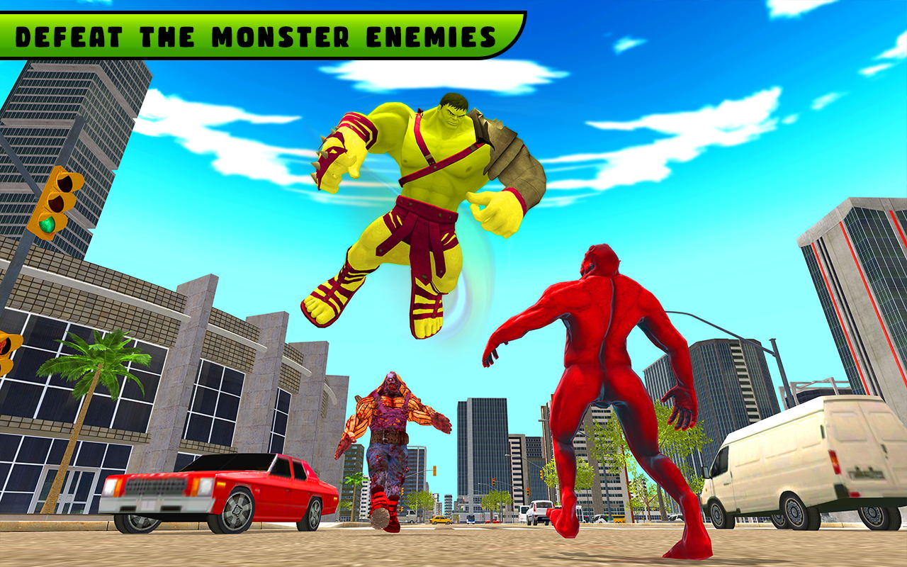 绿巨人怪物城市(Incredible Monster City Hero Rescue Mission 2021)这是一款非常有趣的动作闯关冒险游戏,游戏中玩家们会操控一个绿巨人,你能够在城市之中自由的探索,在这里有可能会有很多的怪兽,你要注意一点,只有干掉所有的怪兽,你才能够维护城市的安全,保证城市不被破坏!