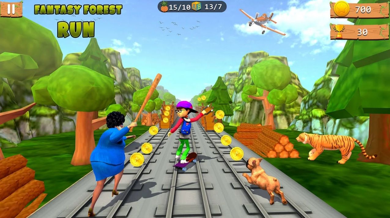 2、躲避迎面而来的火车和可怕的老师,小心森林里的滚木。