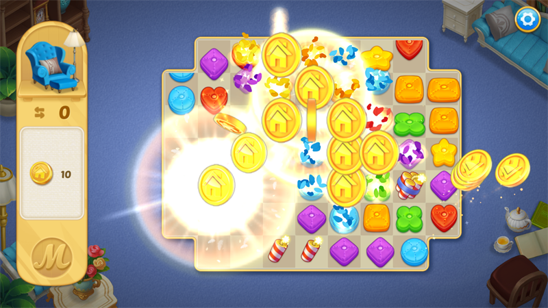 卡通风格的三消游戏,妙趣横生的玩法,还有着瑰丽壮观的庄园。