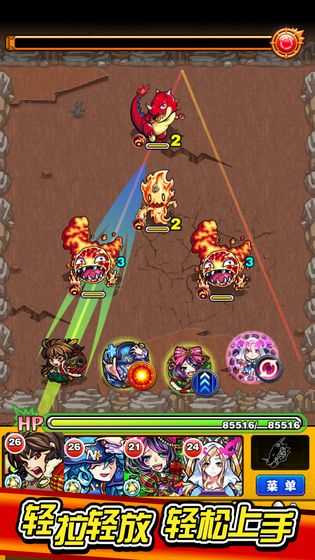 1、用手指拖动怪物瞄准敌人,松开手指就能把怪物弹射出去,同时完成移动和攻击,避免了繁琐的操作。