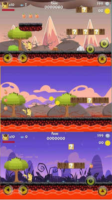 1、游戏中玩家操作皮卡丘进行游戏,熟悉的角色,经典的横版闯关,精心设计的关卡,简单的操作。