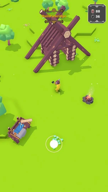 2、根据箭头显示,进行砍树采石等采集活动,然后在指定地点施工。