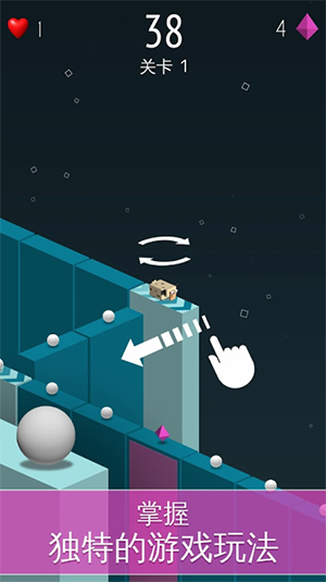1.独特游戏性:角色会自动沿直线跑动,必须迅速反应,切换其路径,收集关卡所有圆点