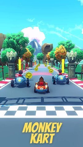 猴子丛林卡丁车是一款卡通有趣的赛车竞技游戏,在游戏中,玩家将扮演着猴子的角色,驾驶自己心爱的卡丁车进行冒险比赛。游戏赛道中会有很多不同的障碍和道具,加速、无敌等等。感兴趣的小伙伴们快来下载吧!