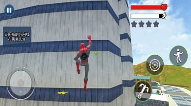 3、在游戏中扮演蜘蛛侠,运用蜘蛛丝进行腾跃、悬挂、追击等动作。