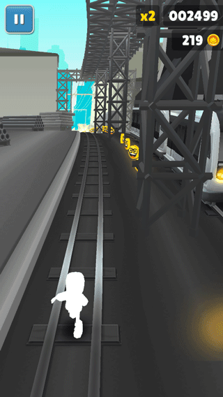 地铁跑酷游戏场景采用黑白的配色搭配,呈现出一个独特的视觉感受。