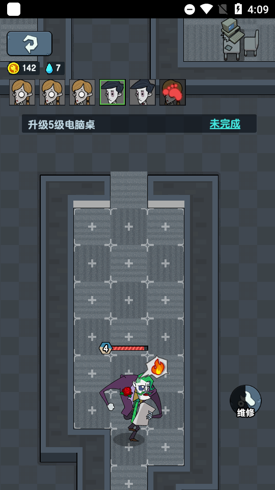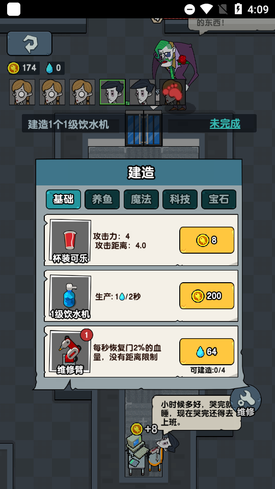 3、需要躲进房间关紧房门,建造防御建筑抵御老板的催促。