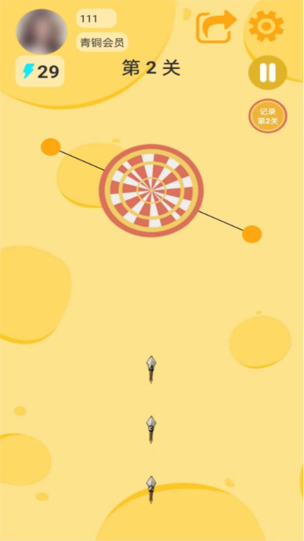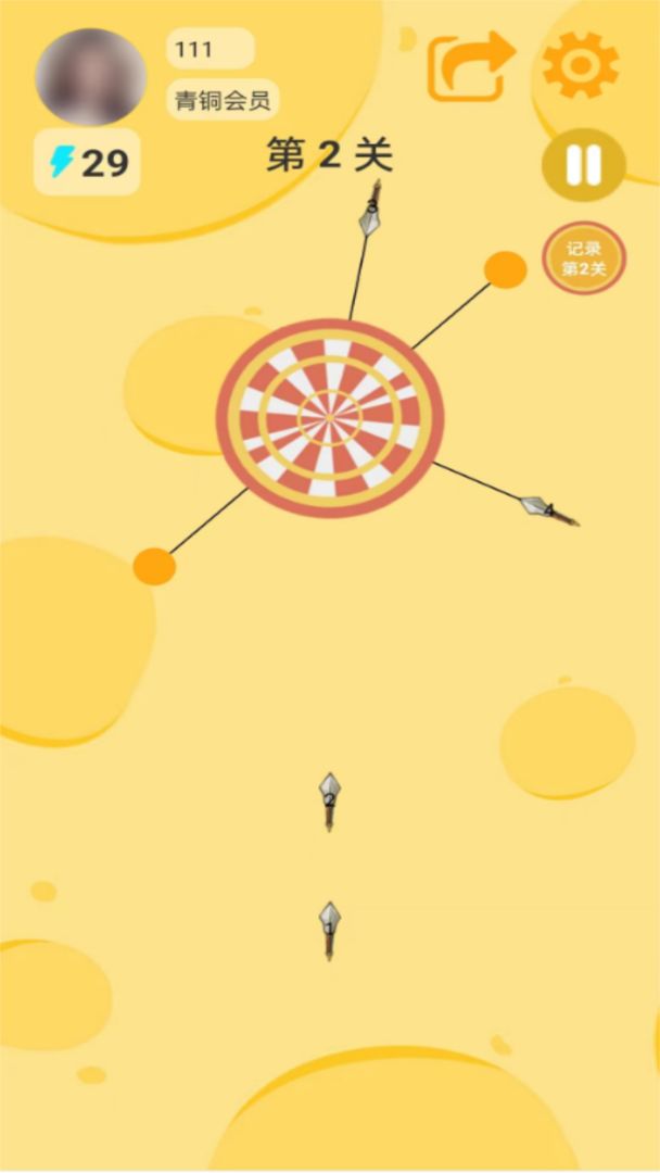 3、玩家将扮演一个飞镖投手,使命是精确地抛掷飞镖并射中方针。