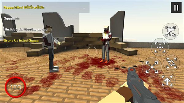 1、操作模式非常的简单,左手控制移动右手射击,还能开车从别人的身上碾压过去。
