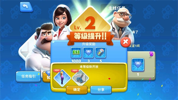 【过关条件】:声誉300,总资产1万,治愈人数10人,治愈率40%,医院价值5.5万。
