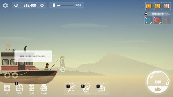 作为一款新派有趣的垂钓游戏,钓鱼人生玩法简单,颇具趣味可玩性,通过左右分屏来控制船只行驶的方向,右侧投掷抛出垂钓,上钩后再次点击即可完成垂钓,期间升级渔具可大幅度提示钓鱼的成功率。