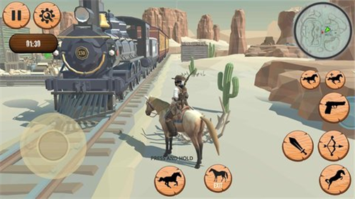 3、山顶街的射击决斗,用牛骑马有各种各样的方法,在西方,你的射击方式决定了你的生死。