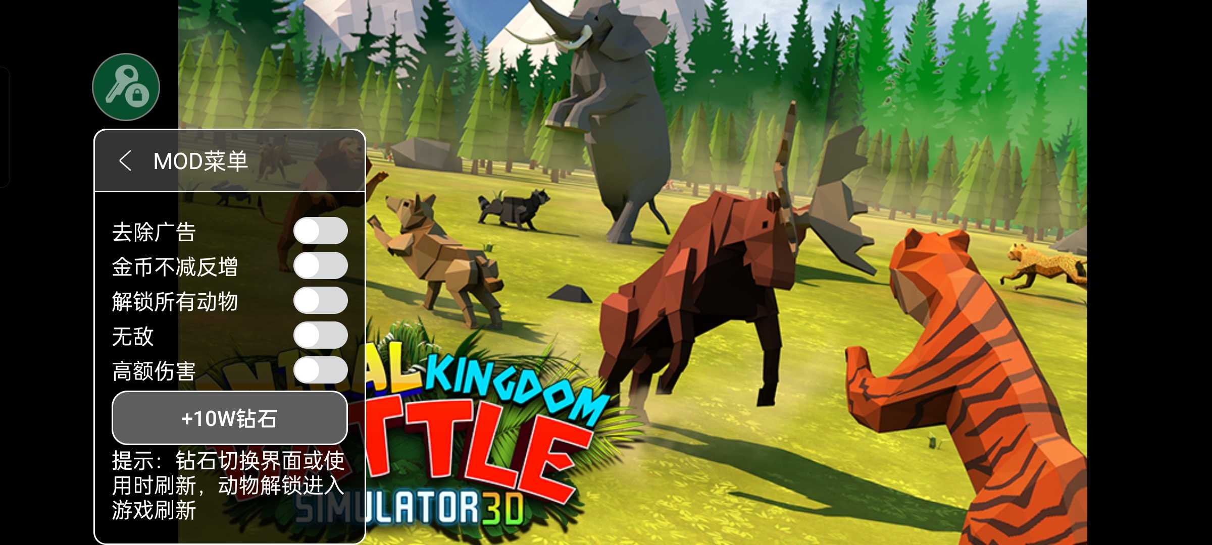 【动物王国战斗模拟器3D】内置修改菜单,带来以下功能,去除广告、金币使用不减反增、解锁所有动物、无敌、高额伤害等。游戏用了很棒的卡通3D建模,这是一个动物王国,每一个动物拥有自己强大的能力,你可组建动物军团战斗,动物还可以实现合成获取最强的在状态。