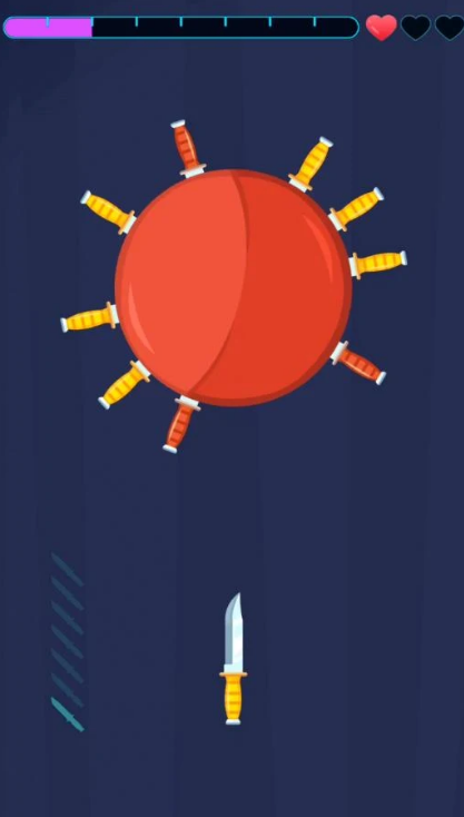 1、简单易上手的玩法,玩家只需通过点击射击靶子,避免碰到已有刀具,即可完成挑战。