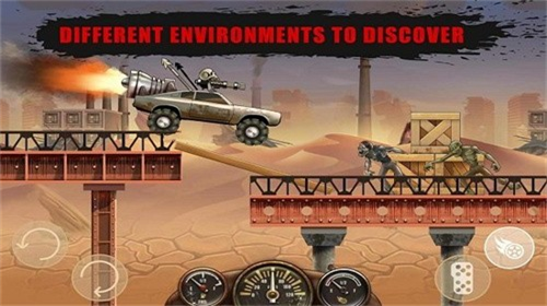 4、驾驶全副武装的越野车行驶在危险的道路上,以满满的火力消灭所有挡路的丧尸。