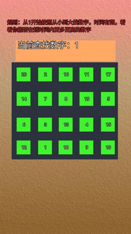 1、游戏目标是在规定的时间内尽可能多地找到数字,成功地找到数字会得到一定的分数;
