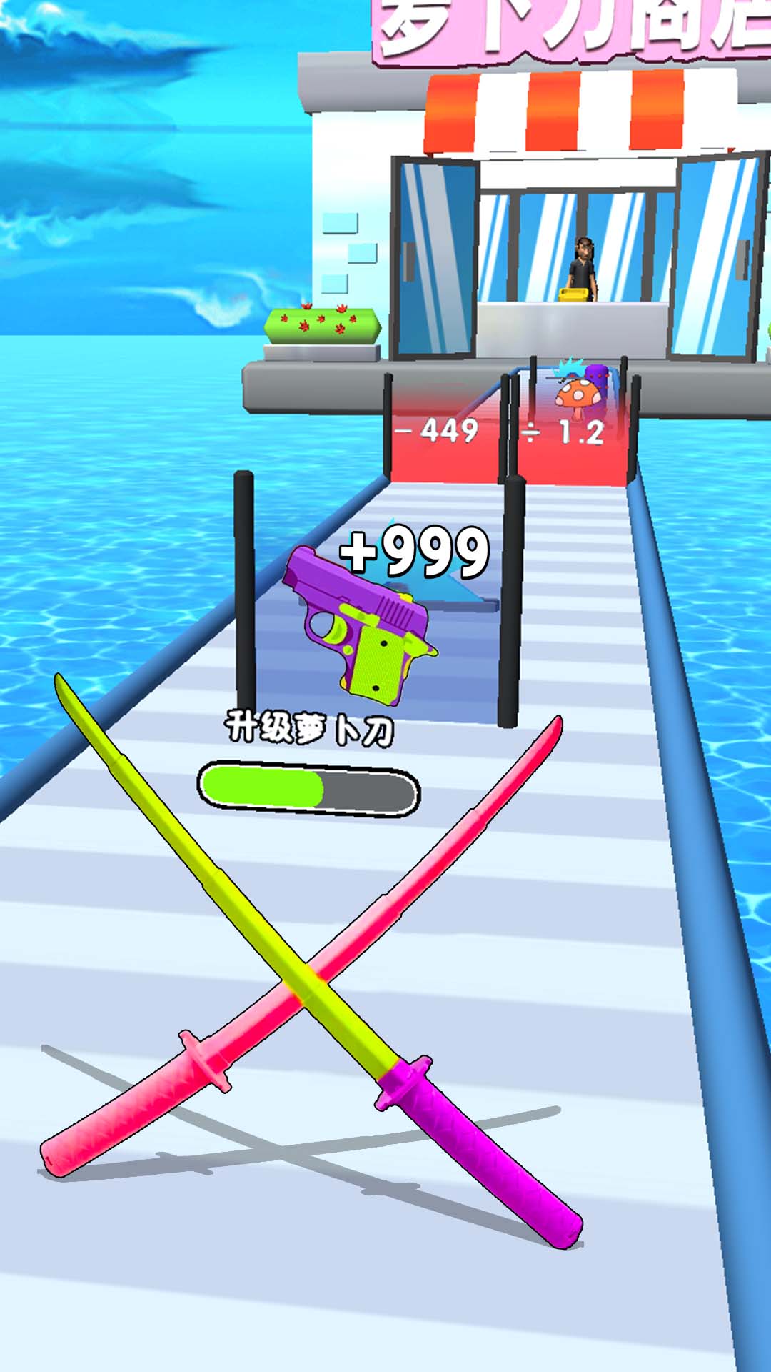 无敌的飞刀这款游戏诙谐幽默,能够让我们在跑酷的玩法中捡到更多对我们有利的道具,让我们在这里见到趣味和轻松,我们的刀在后面可以做到越来越有价值,我们在这样跑酷的玩法中不断向前,能够让我们收获到更多东西。