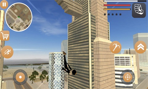 5、玩家将操作火柴人进行近距离射击战斗,在各个高楼之间跳跃;