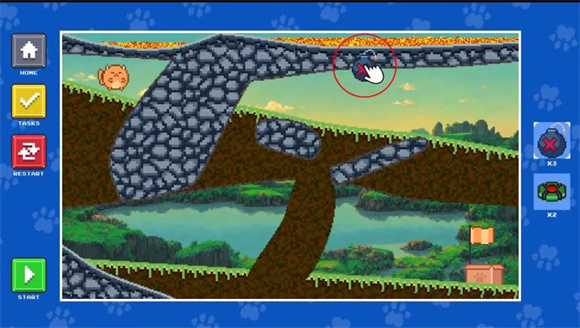 猫咪沙盒是一款像素风格的横版动作冒险闯关游戏,游戏中的画面还是很精致的,你将扮演着一个可爱的小猫咪,展开冒险的跑酷玩法,躲避游戏中的各种障碍物和陷阱,还能使用道具对地图中的任意场景展开破坏。