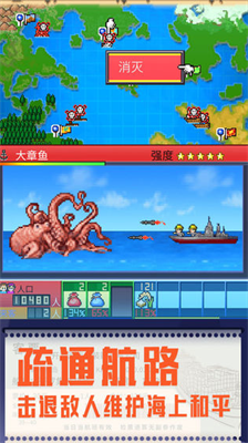 3、研究舰船,出海远航并与海上海盗战斗,驱使你的海洋舰队应战海盗和可怕的海底怪物吧。