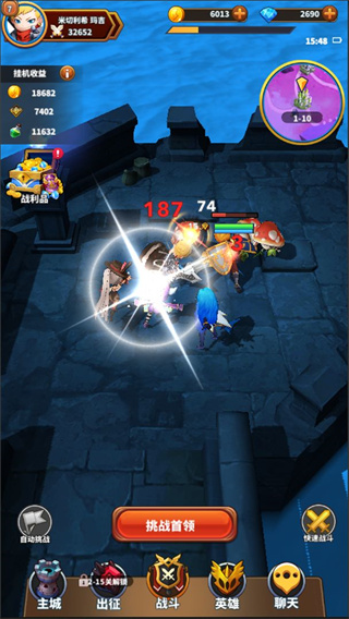 2. 全自动战斗:战斗过程是全自动的,玩家只需要选择角色和技能,然后让游戏自动进行战斗。