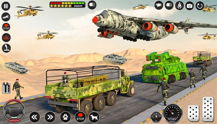 军用卡车运输模拟器游戏中的任务都很紧急,你需要在规定的时间里面将军用物资运输到规定的地方,但是一定要注意!运输的路上会随时充满着危险,炮火连篇,需要时刻小心!喜欢的小伙伴们可以下载试试看!