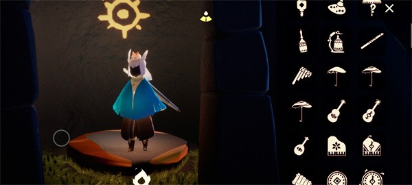 找到蓝色人影并且触碰它,跟随广电就可以看到一个深灰色的石像,点燃石像上的火苗就会教我们一个新的互动姿势